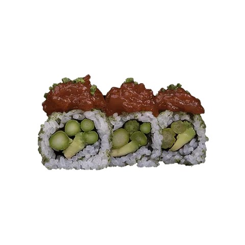 Komkommer, avocado, maïs, edamame, mango, cherry tomaten, chuka wakame en sake