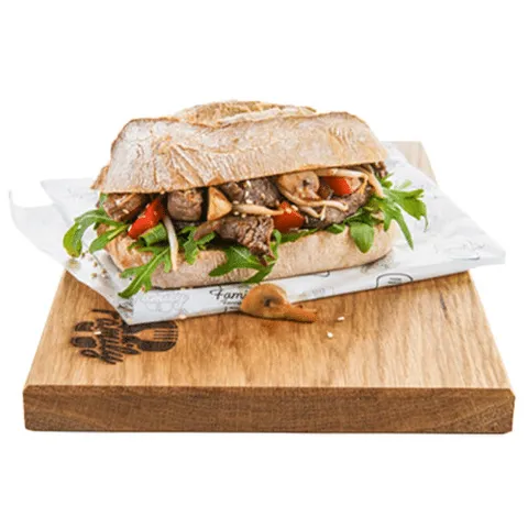 Met honing, gevuld met brie, sla, tomaat, komkommer en honing-mosterdsaus