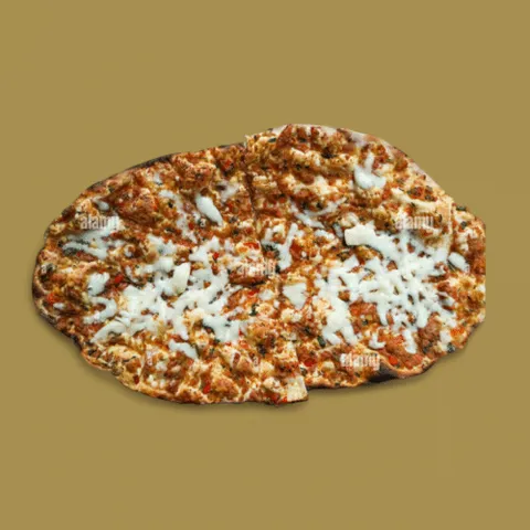 Kipfilet, mozzarella, gekarameliseerde ui, champignon, maïs, sojasaus en mayonaise