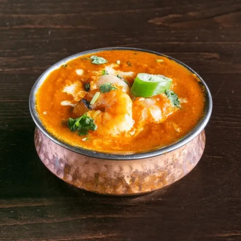 Alle garnalen gerechten worden geserveerd met basmati rijst of naan