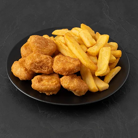 4 Chicken Tenders, 5 Chicken Wings, 8 Chicken Nuggets, 10 Onion Rings en 3 sauzen naar keuze