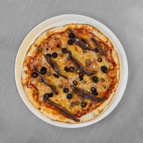 Tomaat, kaas, ansjovis, kappertjes en olijven