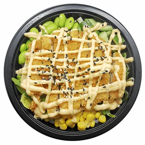 Komkommer, maïs, edamame, avocado, zeewier, kip en pittige mayonaise